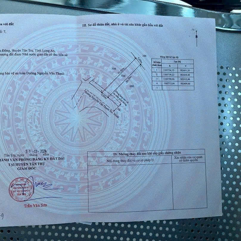 Địa chỉ : Bán đất thổ cư Mặt tiền đường Nguyễn Văn Thanh, xã Bình Trinh Đông, huyện Tân Trụ, tỉnh Long An CŨ ( TÂY NINH MỚI ) DT 153,7m² đất ONT, Xã Bình Trinh Đông, Huyện Tân Trụ, Long An